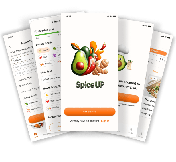 Discover healthy recipes in seconds with SpiceUp—the app that makes cooking smarter, using what’s already in your kitchen.