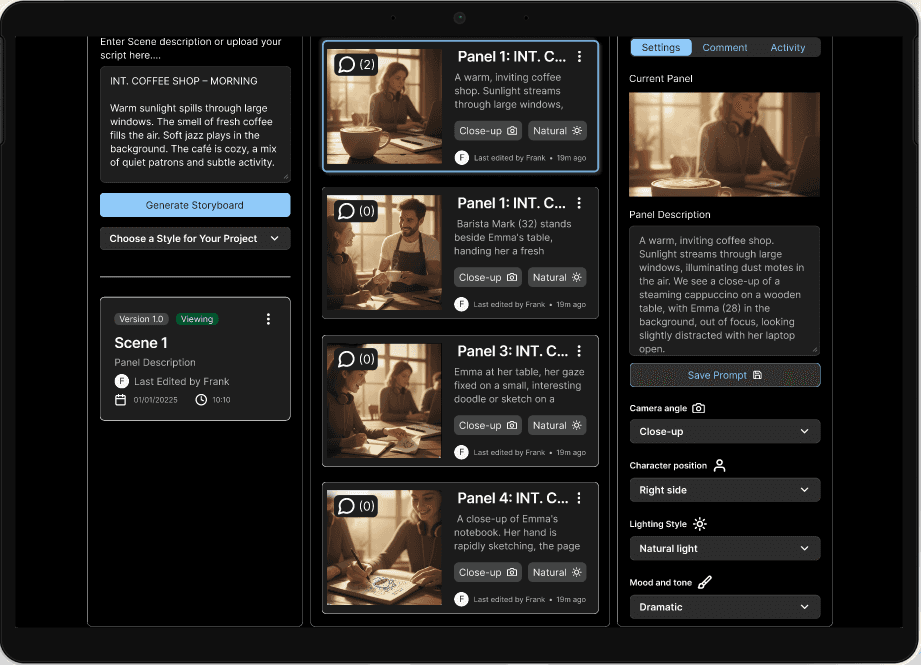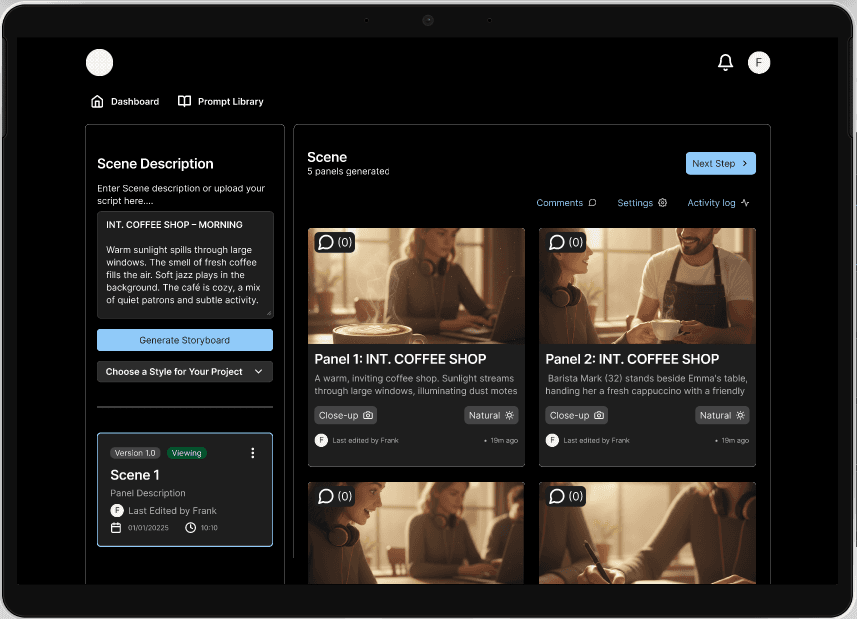 Solution: designed modular screens (Script → Storyboard → Video) and collaborated closely with the developer to keep technical feasibility.