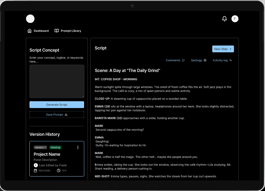 Challenge : How might we create a unified, intuitive platform that allows creative teams to generate and refine scripts, images, and videos seamlessly using AI?