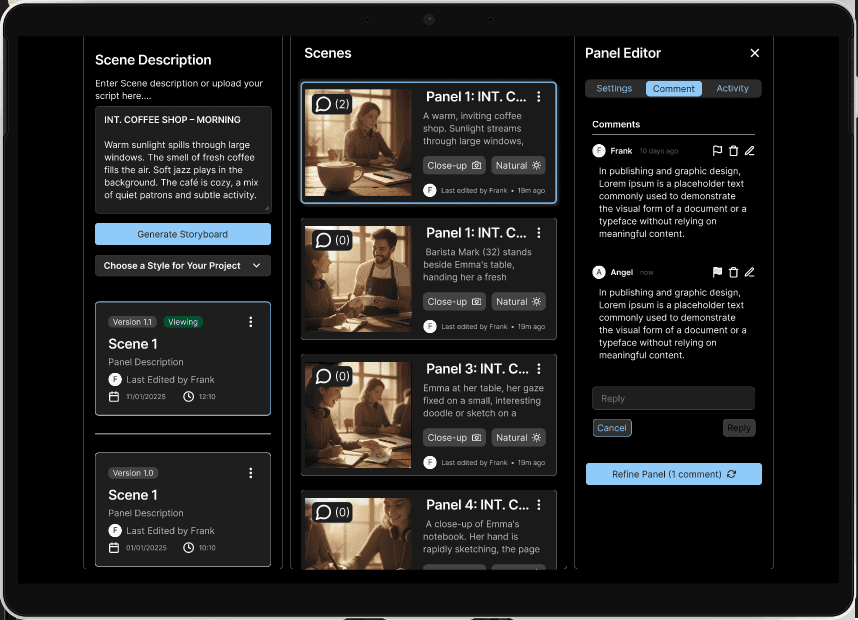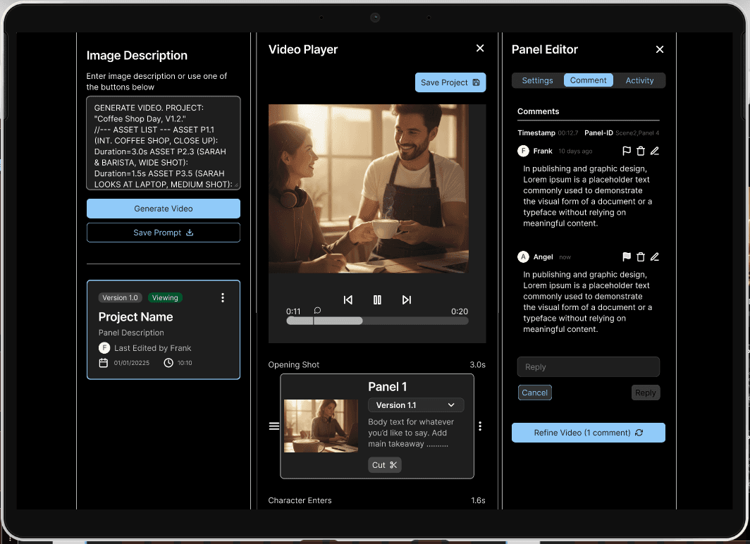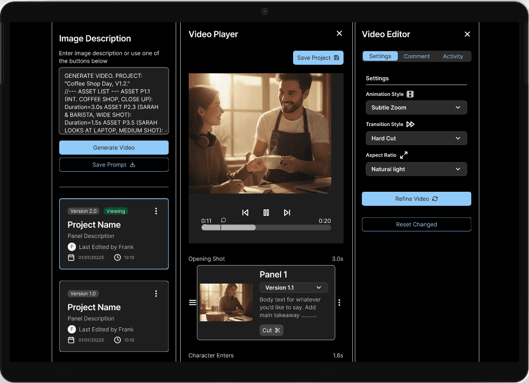 Each edit—settings change, panel reorder, or comment refinement—automatically:
