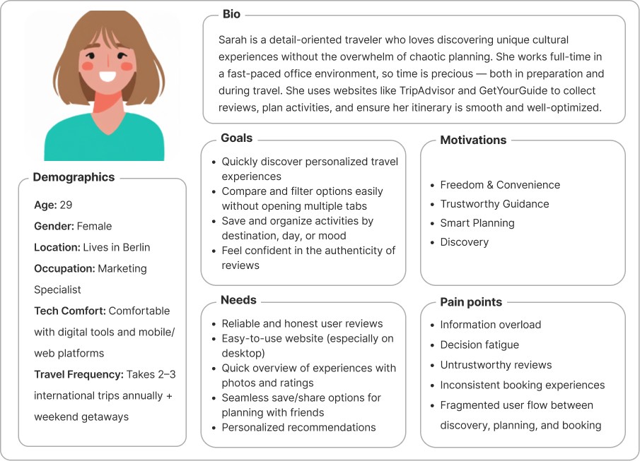 I realized how crucial it is to recruit the right participants for user interviews. Selecting users familiar with digital tools and similar travel apps provided actionable and relevant feedback during the early design stages.