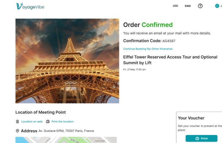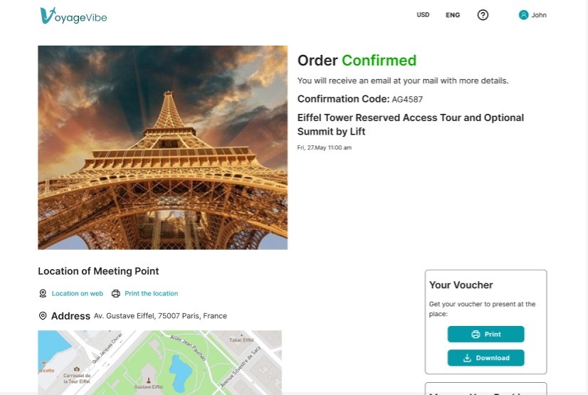 → Solution: I added a "Back to Itinerary" button on the confirmation page to allow users to seamlessly continue booking other activities.