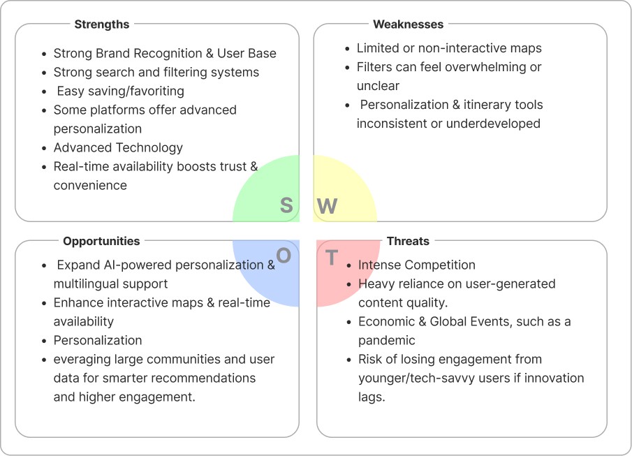 I synthesized insights from heuristic evaluations of competitor platforms and qualitative analysis of user reviews to identify: